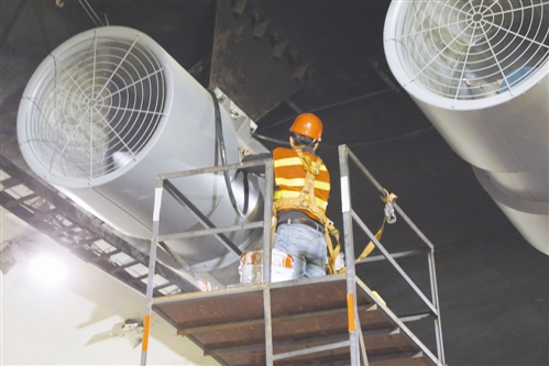 11月1日是隧道整治施工的第四天,工地現(xiàn)場,多個(gè)作業(yè)面同時(shí)鋪開,施工人員三五個(gè)一組共近60來人,有序分工,緊鑼密鼓地開展各項(xiàng)作業(yè)。施工現(xiàn)場,有的站在活動(dòng)腳手架上安裝燈具,有的在布管線、接線調(diào)試,有的在安裝風(fēng)機(jī)……一項(xiàng)工序銜接著另一項(xiàng)工序,各個(gè)工種環(huán)環(huán)相扣。截止當(dāng)晚10點(diǎn)30分,隧道內(nèi)燈具、風(fēng)機(jī)全部安裝完畢,黃土嶺隧道群整治已完成總工程量的60%。