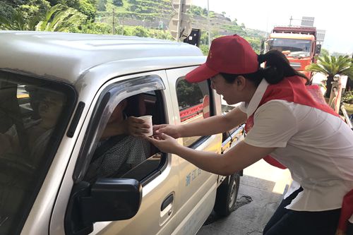 “大中午的,天氣熱,剛才還暈乎乎的想睡覺,現(xiàn)在喝了一杯冰冰涼的綠豆湯,整個人都舒暢了。”一位貨車師傅開心地說。 “沒想到,你們收費(fèi)站還有這個服務(wù),這次我要出趟遠(yuǎn)門,說不定路上還真能用的上,謝謝呀!”一位接過礦泉水和風(fēng)油精的老師傅連聲道謝。 天氣雖炎熱,服務(wù)不“打烊”。 在活動中,志愿者們不顧自身大汗淋漓,仍身披橫幅,頭戴小紅帽,面帶微笑向途經(jīng)收費(fèi)所的司機(jī)們遞上一杯杯綠豆湯、一瓶瓶礦泉水。同時,大家還不忘宣傳行車安全注意事項,提醒司機(jī)朋友在高溫酷暑時節(jié)多注意行車安全。