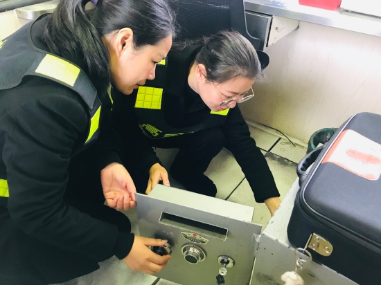 圖為安全檢查現(xiàn)場 除了暖心服務(wù),臨海南收費所更是將安全保暢放在重要位置,春運開始前,該所全面啟動各項準(zhǔn)備工作,及時召開春運安全保暢動員會,成立春運安全工作領(lǐng)導(dǎo)小組,全員簽訂春運安全生產(chǎn)責(zé)任書,切實提高全所員工對春運工作重要性的認(rèn)識。深入開展安全檢查,對收費系統(tǒng)、配電房、安全設(shè)施、設(shè)備進行全面檢查,發(fā)現(xiàn)問題及時檢修,確保春運期間設(shè)備的正常運轉(zhuǎn)與安全。同時做好了啟動惡劣天氣道路保暢應(yīng)急預(yù)案,開足車道,確保道口無擁堵現(xiàn)象,保障車輛安全、快速通行。 大流量期,收費員堅持以微笑的面容、溫暖的話語、規(guī)范的肢體動作和干凈整潔的形象,為廣大司乘人員提供文明、優(yōu)質(zhì)的服務(wù),將暖心切實落到行動上,化到細(xì)節(jié)里。 陳瑩