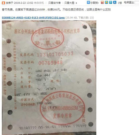 集團(tuán)對此事件高度重視,當(dāng)即調(diào)取當(dāng)時(shí)多路監(jiān)控錄像,還原了事件真相。2月22日凌晨0:29:50,投訴人駕駛小轎車進(jìn)入臺(tái)州所6號車道,時(shí)間已經(jīng)過了春節(jié)小客車免費(fèi)通行的期限,收費(fèi)員黃智超請求出示入口站的通行卡或者紙質(zhì)繳費(fèi)憑證,車主回答無卡無票,聲稱自己是從臨海南上進(jìn)入高速。經(jīng)查證,臨海南并沒有該車的入口信息。收費(fèi)班長再次詢問時(shí),車主說“忘記了”,說自己“去年過來時(shí)只付了20塊錢”,但是臺(tái)州站出口小客車最少通行費(fèi)是25元(因?yàn)橛写召M(fèi)10元),收費(fèi)班長回答不存在有“20元的通行費(fèi)”,司機(jī)忽而改口說是天臺(tái)進(jìn)入的,忽而想了一下又說是重慶過來的,在安徽呆了兩天,當(dāng)天早上從安徽上的高速。班長再三解釋中途沒下高速未重新領(lǐng)票或卡,一旦過了免費(fèi)期限,是哪個(gè)站入口就按哪里收費(fèi)的。“浙皖主線”是安徽進(jìn)入浙江的收費(fèi)站,通行費(fèi)(連代收費(fèi))是小客車200元。車主于0:35:46遞給收費(fèi)員200元,收費(fèi)員打印發(fā)票遞回,車主于0:36:15拿出手機(jī)對著收費(fèi)員拍照,0:36:30駛離車道。