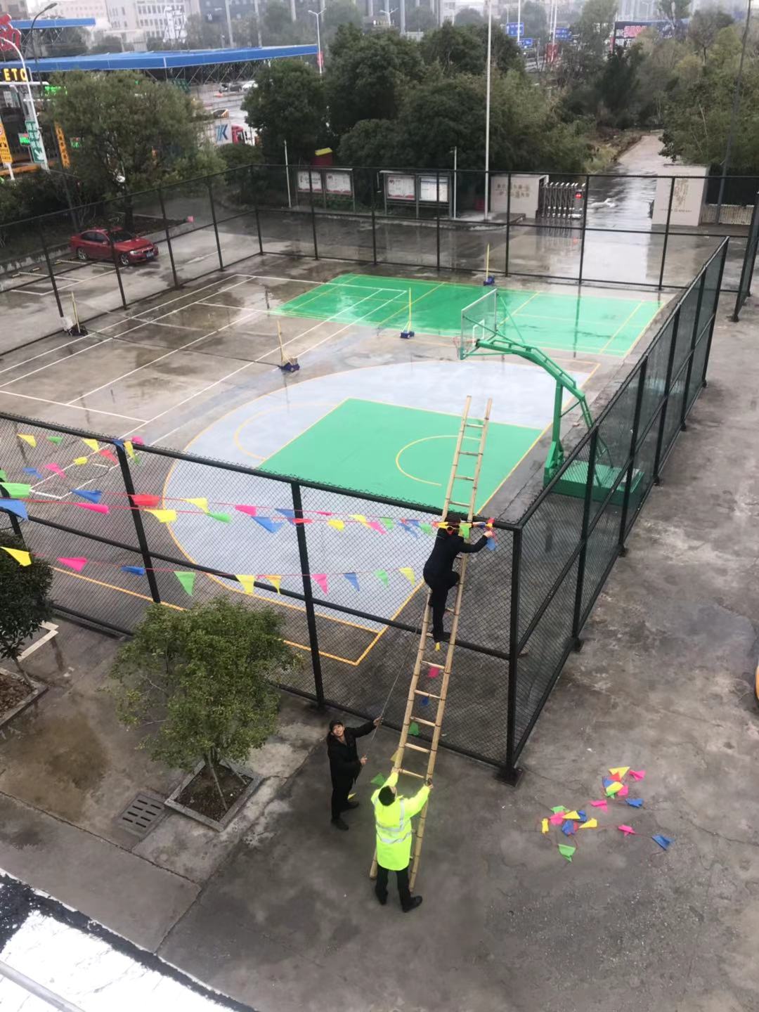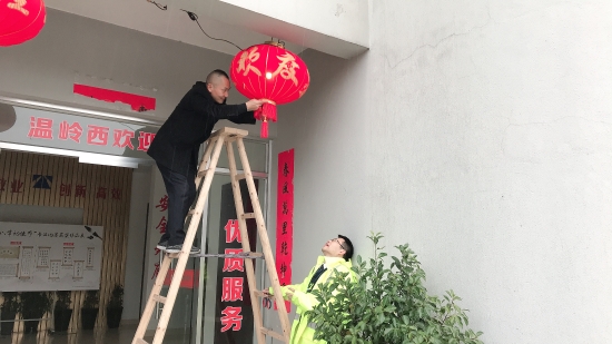 圖為工作人員共同裝扮收費(fèi)所 此次活動(dòng),溫嶺西收費(fèi)所本著大氣、熱烈、節(jié)儉的原則,在食堂、辦公樓、操場(chǎng)等區(qū)域掛上燈籠、拉上彩旗、貼上福字和對(duì)聯(lián),在收費(fèi)內(nèi)廣場(chǎng)護(hù)欄處插上彩旗,有了這些裝扮,整個(gè)站所處處洋溢著喜氣洋洋、新穎美觀的節(jié)日氛圍。此外,員工們還自發(fā)在站所打掃衛(wèi)生清理垃圾,重點(diǎn)對(duì)辦公樓、宿舍區(qū)及收費(fèi)崗?fù)ず蛢?nèi)外廣場(chǎng)等區(qū)域的環(huán)境衛(wèi)生進(jìn)行全方位清掃。各班組齊心協(xié)力共同打掃,為春節(jié)掃塵。經(jīng)過(guò)大家的努力,整個(gè)站區(qū)呈現(xiàn)出整潔優(yōu)美的工作環(huán)境,向過(guò)往司乘充分展示溫嶺西收費(fèi)所的良好精神風(fēng)貌。