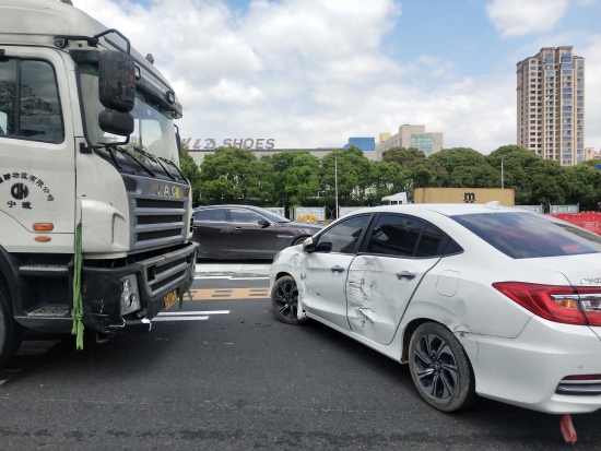 圖為事故現(xiàn)場 聽到巨響,收費員立即上前查看,所幸兩車司機都安好,便立即開啟備用車道,以保證其他車輛通行順暢,并且在事故車輛后方放上小紅帽,告知后方來車及時駛入其他車道。而兩車司機快速撥打交警電話,并且拍照留證,以最快的速度駛出收費站靠邊等待交警處理。 經調取錄像,查看事故緣由。“真相”竟是集裝箱司機引發(fā)的,該車從杭州寧波方向過來,小轎車司機從溫州方向匝道駛出,由于集裝箱司機下橋時沒有注意右方來車,只顧自己右拐車道,直接頂著轎車開出50多米,所幸未造成人員傷亡。 在此小編提醒大家:在駛入匝道的時候,司機要減速行駛;在選擇出口車道的時候,要仔細查看前后方和左右來車,且不要突然變更車道,否則容易造成車輛之間的親密“接觸”。 只有文明安全行駛,才是對自己和他人最好的保護。 鄭霞霞