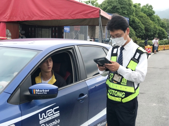 圖為收費(fèi)站人員幫過往司乘激活ETC設(shè)備