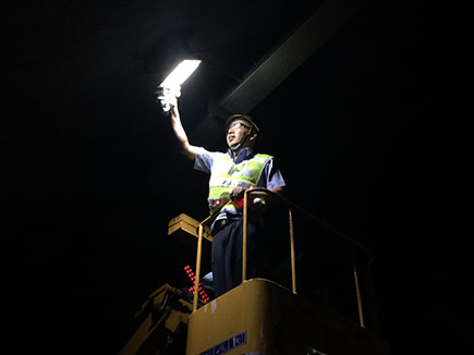 圖為工作人員更換滅火器 因隧道內(nèi)車輛往來密集,氣體和灰塵難以散發(fā),容易沉積在隧道壁、監(jiān)控攝像頭及照明燈上形成污漬,此日積月累削弱了隧道內(nèi)的照明效果,影響駕駛員視線,存在安全隱患。對此,黃土嶺隧道所組織人員對隧道進行清洗和維修保養(yǎng)設備,全面排查各類安全隱患。執(zhí)勤隊利用登高車逐一清潔寧向左洞內(nèi)監(jiān)控攝像頭及照明燈,檢查消防設施狀況,統(tǒng)一對滅火器進行掛牌完善記錄,并協(xié)同維養(yǎng)中心檢修溫向隧道照明系統(tǒng)線路,修復損壞的燈具。 經(jīng)過清洗保養(yǎng)后的黃土嶺隧道,燈光通明,監(jiān)控清晰,有效地保障了隧道的安全暢通。 毛譯聆