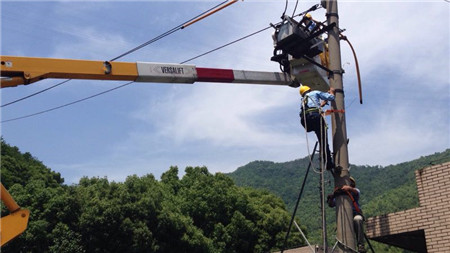 圖為供電部門安裝南配線路