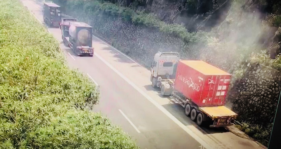 快速出警 將“火”扼殺在萌芽狀態(tài) 7月17日,連日的陰雨總算放晴,中控員如常盯著監(jiān)控大屏,13:18分,黃土嶺隧道溫向北洞口停車帶一輛紅色半掛車極其耀眼,憑借多年的崗位經(jīng)驗(yàn),中控員第一時(shí)間切換到主畫面,嚴(yán)密監(jiān)視車輛動(dòng)態(tài)。 “不好,車輛‘著火’了!”短短幾秒鐘的時(shí)間,此車右側(cè)后方逐漸升起煙霧,越來越濃密。中控員立即通知監(jiān)控中心與執(zhí)勤隊(duì),啟動(dòng)應(yīng)急預(yù)案。