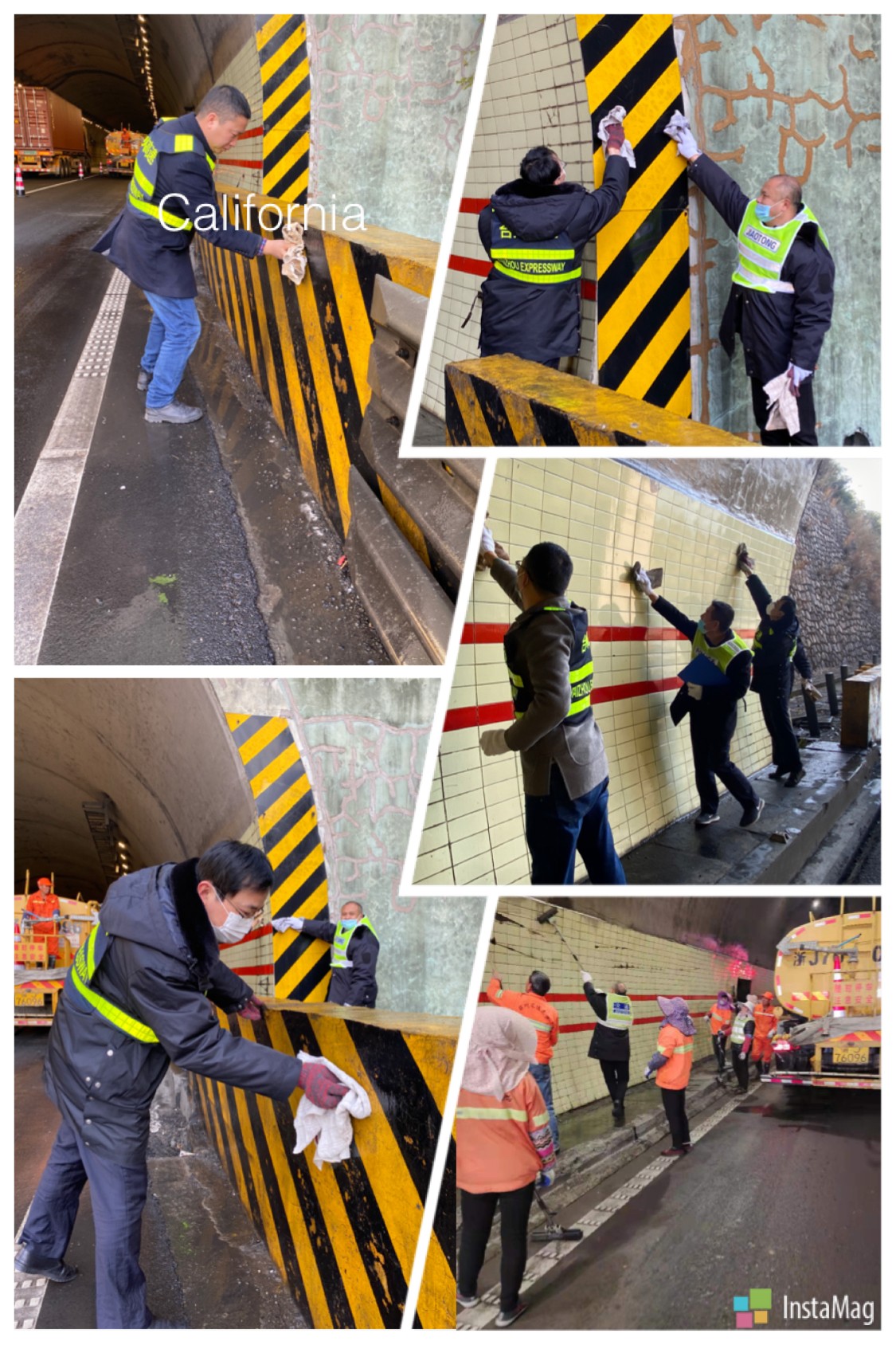 1月14日,黃土嶺隧道所組織黨員志愿者清洗馬鬃嶺隧道。 年關臨近,馬鬃嶺隧道日流量高達40000多輛,汽車尾氣、揚塵給隧道壁和標志牌等設施造成了污染,嚴重影響隧道面貌和行車視線。為了提升隧道內道路通行環(huán)境,黃土嶺隧道所抓住節(jié)前清洗隧道的良機,與高速交警、養(yǎng)護公司聯(lián)合制定清洗保暢方案,確保隧道清洗順利開展。
