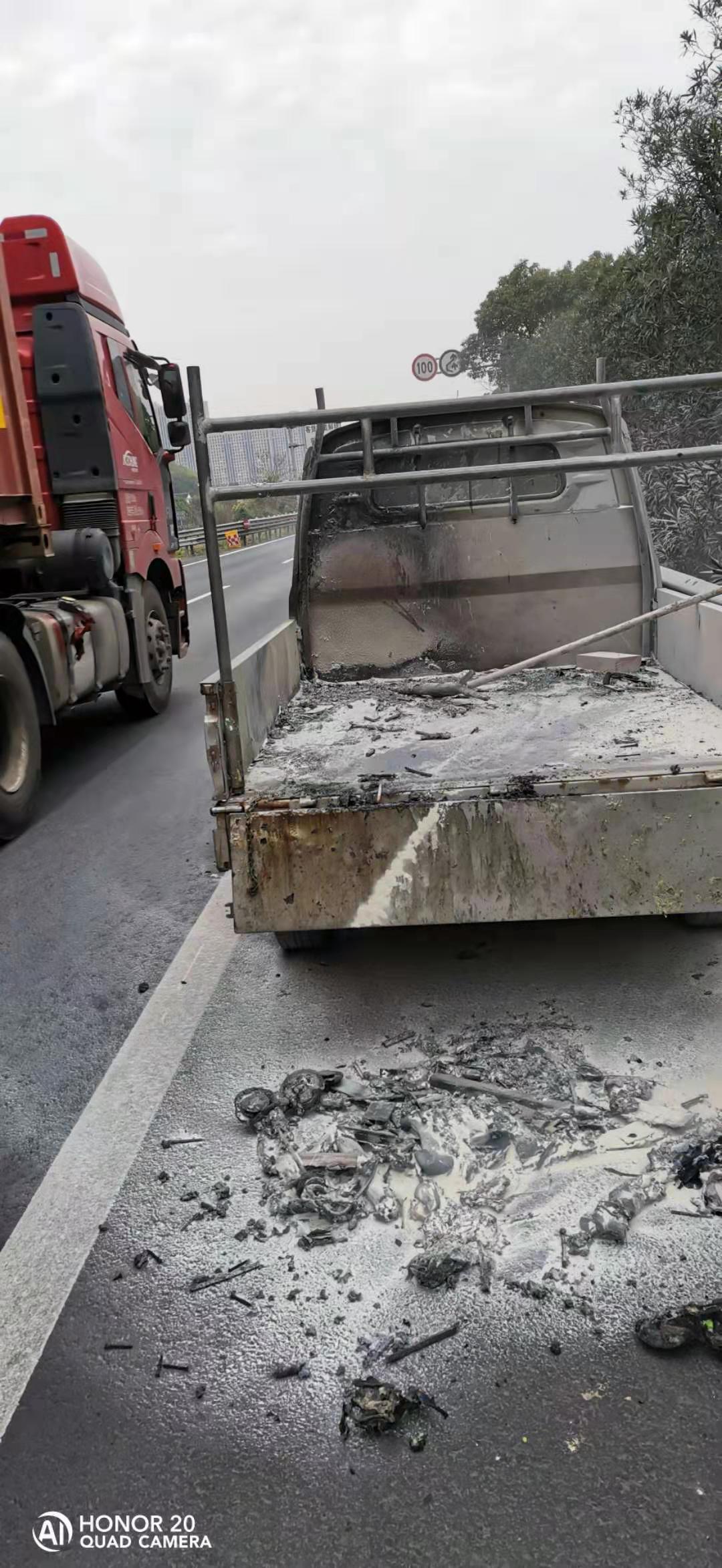 3月10日清晨7點(diǎn)46分,一輛五菱小貨車裝載物莫名起火,驟停在黃土嶺隧道溫向出洞口100米左右的硬路肩,情況十分危急。