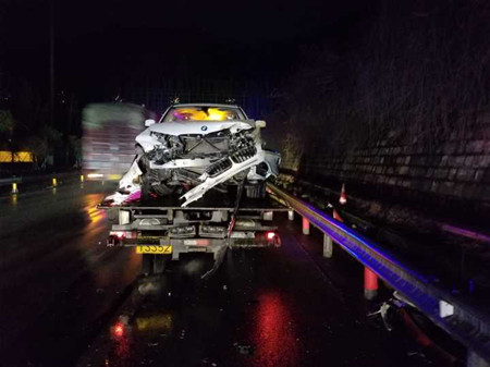 當(dāng)天18:16分左右,該隧道內(nèi)還發(fā)生了一起嚴(yán)重追尾事故,一輛寶馬X3在進(jìn)入隧道之前由于車速過快避讓不急,狠狠的與前方一輛大貨車發(fā)生追尾,被撞得慘不忍睹。所幸車上只有駕駛員一人且系了安全帶并未受傷。