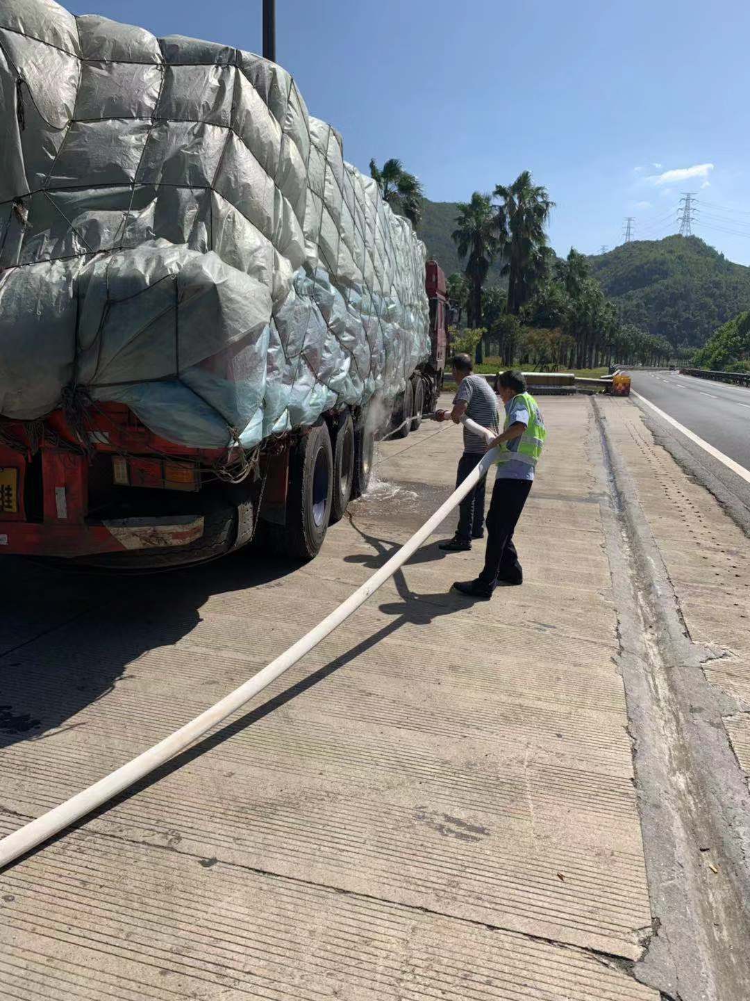 圖為消滅隱患現(xiàn)場(chǎng) 同時(shí),中控員密切關(guān)注車輛動(dòng)向,13:37,中控員在隧道南廣場(chǎng)發(fā)現(xiàn)該車,巡邏車立即奔赴現(xiàn)場(chǎng),該車后輪胎剎車位置在冒煙,司機(jī)正用礦泉水澆輪胎,隊(duì)員們見狀,火速上前把消防栓打開,接上消防水帶,交與該車司機(jī),托著消防水帶,對(duì)準(zhǔn)輪胎接連猛射,冷卻剎車片,輪胎終于沒有冒煙,一場(chǎng)隱患被隊(duì)員消除了。 據(jù)悉,該輛半掛車因輪胎爆炸,引起冒煙,司機(jī)卻想著從下一個(gè)高速出口,幸好隊(duì)員們監(jiān)控及時(shí),出警迅速,施救到位,把隱患扼殺在搖籃里,沒在隧道內(nèi)發(fā)生火災(zāi),不然后果將無法想象。 現(xiàn)場(chǎng),隊(duì)長(zhǎng)告知司機(jī),萬一車輛發(fā)生火災(zāi),請(qǐng)把車停在隧道外,若在隧道內(nèi)發(fā)現(xiàn)車輛起火,請(qǐng)加速駛往隧道口,盡快駛離隧道,避免造成人員傷亡。 陳智慧