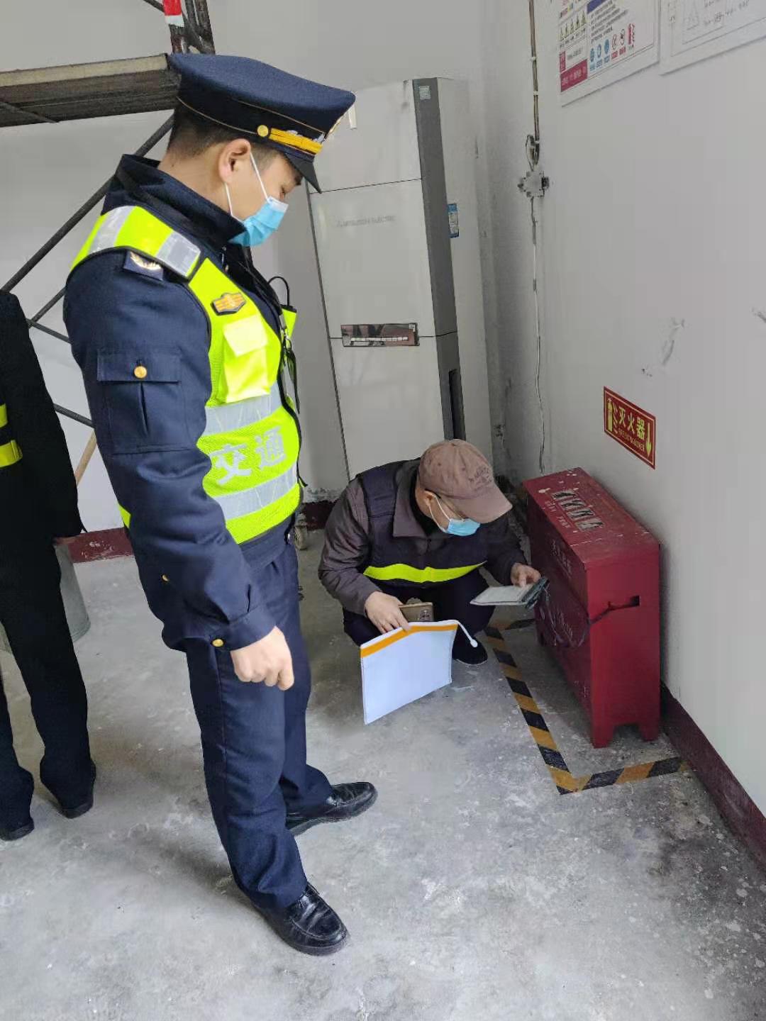 (圖為吳軍偉檢查滅火器)