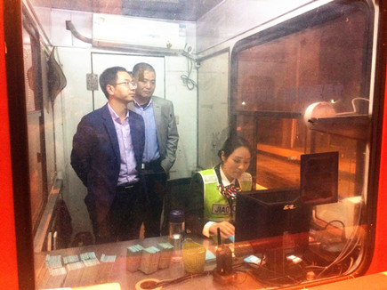 公司副總經(jīng)理董阿林夜訪收費(fèi)所 4月11日晚上,公司副總經(jīng)理董阿林來到沿線四個(gè)收費(fèi)所了解現(xiàn)場收費(fèi)工作。征費(fèi)部相關(guān)人員陪同檢查。