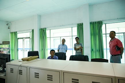 圖為集團(tuán)副董事長、總經(jīng)理張建平檢查大溪嶺隧道所監(jiān)控室