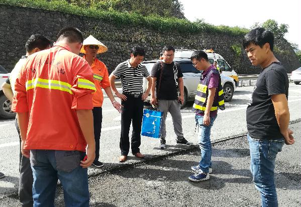 集團總工程師江輝到臨海南匝道現(xiàn)場查看病害