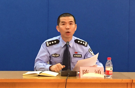 圖為臺(tái)州市公安局交通警察局副局長(zhǎng)陳涌解答記者疑問(wèn)