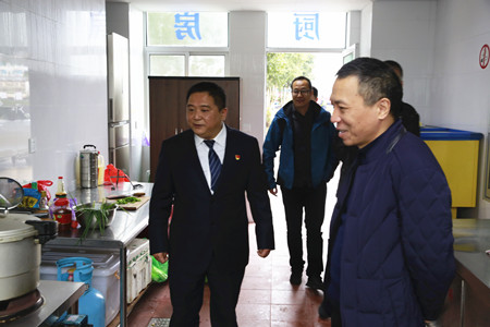 圖為集團(tuán)副董事長、總經(jīng)理張建平檢查臺(tái)州南收費(fèi)所食堂