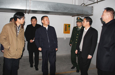 圖為副市長、公安局長伍建利一行在消控室檢查