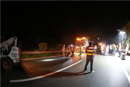 由于日益繁重的道路交通及丘陵橋梁多的地理因素,臺(tái)州至臺(tái)州南之間約13公里路段路面損壞嚴(yán)重平整度較差,此次路面維修施工主要目的緩解橋頭跳車(chē)改善路面行駛質(zhì)量。為盡量避免給公眾出行帶來(lái)影響,施工基本采用夜間斷流封道方式進(jìn)行,封道時(shí)間為晚上9點(diǎn)至第二天早上7點(diǎn)。針對(duì)上述情況,集團(tuán)工程部、營(yíng)運(yùn)部、所、中心等相關(guān)部門(mén)在開(kāi)始施工前就做好了充分準(zhǔn)備。
