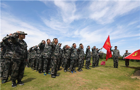 “讓我們重溫入黨誓詞,牢記黨員使命。”當(dāng)鮮紅的黨旗在墾荒紀(jì)念碑下鋪開(kāi)的時(shí)候,大家的思緒拉回現(xiàn)實(shí)。激情燃燒的歲月是歷史,從歷史中汲取力量,不忘初心,弘揚(yáng)和傳承艱苦創(chuàng)業(yè)精神,鍥而不舍地克服集團(tuán)發(fā)展中的難關(guān)難題,才是此行活動(dòng)真正的意義所在。“我志愿加入中國(guó)共產(chǎn)黨......”面向黨旗,大家齊齊舉起右手,跟隨集團(tuán)黨委委員陳保衛(wèi)一起大聲宣誓,墾荒碑下回聲嘹亮,一句句錚錚誓言體現(xiàn)出黨員干部無(wú)比堅(jiān)定的信念。