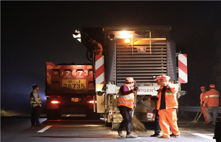 確定日期時間。施工前夕工程部負(fù)責(zé)人反復(fù)與交警、路政等部門溝通協(xié)調(diào),渠道暢通,最終達(dá)成一致意見,為盡量避免給公眾出行帶來影響,施工基本采用夜間斷流封道方式進(jìn)行。施工過程中與高速交警、路政配合默契,封道都在規(guī)定時間內(nèi)開始結(jié)束,盡所能減輕施工對高速營運(yùn)影響,保證路段通行能力。