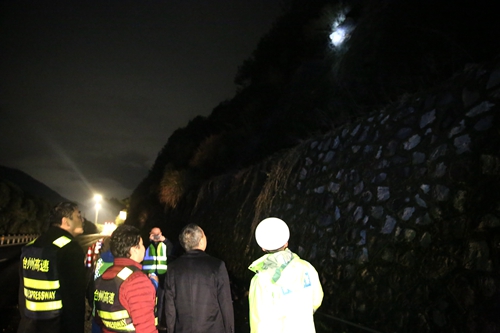 張建平與高速交警、施工單位等相關(guān)人員仔細(xì)勘踏險情現(xiàn)場,連夜會商制定解決高邊坡落石臺上的巨石方案。由于深夜天黑,高邊坡坡度較高,沒有直接供人上坡的道路,夜間施工存在較大困難且易造成人身危險,只能安排人員緊盯現(xiàn)場通宵觀察情況,隨時匯報(bào)險情進(jìn)展,等天一亮立即清理二級平臺上的大落石。張建平特別叮囑相關(guān)部門負(fù)責(zé)人,近期雨水還將持續(xù)一段時間,容易造成塌方等自然災(zāi)害的發(fā)生,一定要組織人員再次對高速全線高邊坡開展隱患大排查。