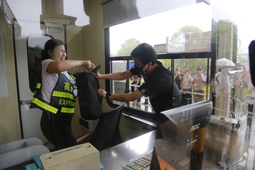 隨后,多名參演員工冒雨模擬收費(fèi)崗?fù)ず土嘘?duì)下崗遭遇“歹徒”搶劫的情景開(kāi)展防盜搶演練。現(xiàn)場(chǎng),2名蒙面歹徒執(zhí)仿真刀、軟棍威脅收費(fèi)員交出現(xiàn)金,危機(jī)之中,收費(fèi)站立即啟動(dòng)應(yīng)急處置預(yù)案并報(bào)警求助,收費(fèi)員有效與歹徒周旋,應(yīng)急處置組人員迅速攜鋼叉、橡膠棒、勞動(dòng)工具等赴現(xiàn)場(chǎng)支援,值班領(lǐng)導(dǎo)、收費(fèi)班長(zhǎng)、監(jiān)控員合力協(xié)作應(yīng)對(duì)歹徒,防盜搶演練順利結(jié)束。