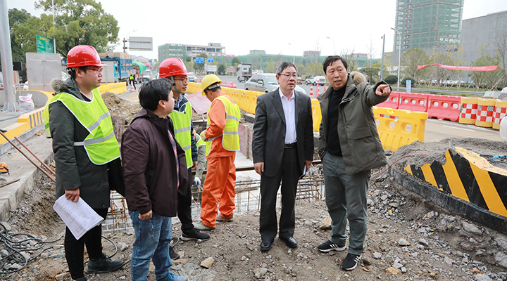 圖為陳文波在收費所混合車道施工現(xiàn)場了解施工進(jìn)展情況