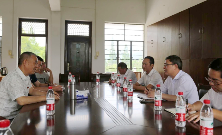 圖為陳文波與村兩委班子以及駐村指導員座談交流 在塘上村的村委會會議室里,陳文波與村兩委班子以及駐村指導員進行座談交流。塘上村村支書、村長,以及其他村干部分別向陳文波等介紹了村里近期的基礎(chǔ)設(shè)施建設(shè)、村民生產(chǎn)生活、產(chǎn)業(yè)扶貧措施、文化禮堂建設(shè)等工作中的重點難點問題,同時代表村民感謝臺州高速集團長期以來對塘上村的支持和幫助。