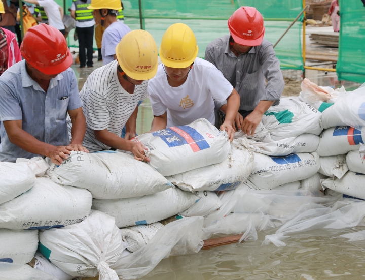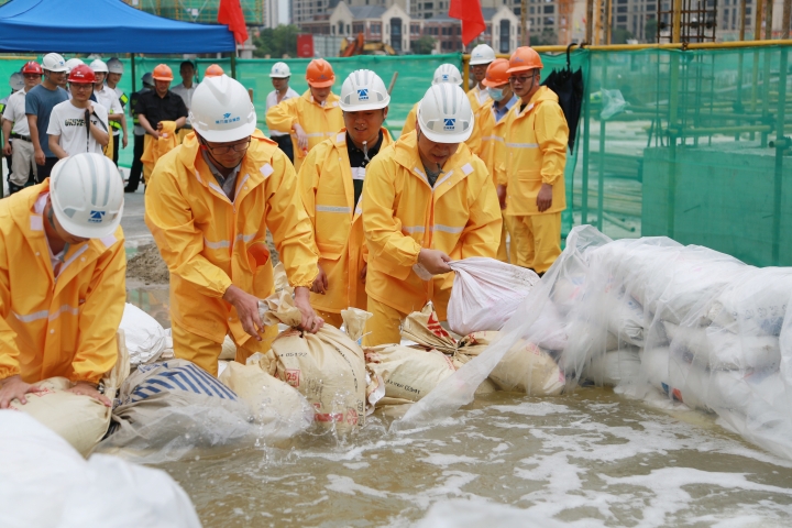圖為模擬建筑工地面對洪水倒灌的現(xiàn)場應(yīng)急搶險(xiǎn)
