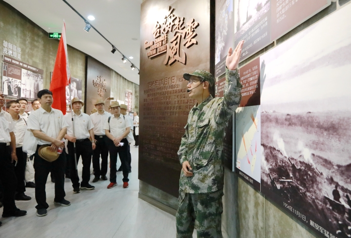 通過講解員的解說,大家更加深入地了解一江山島登陸戰(zhàn)全過程,感受了中國人民解放軍海陸空三軍首次聯(lián)合作戰(zhàn)的光榮歷史。