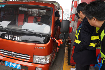 圖為集團(tuán)總工程師江輝現(xiàn)場了解自助發(fā)卡機(jī)使用情況 江輝一行首先來到臺(tái)州收費(fèi)站,查看ETC高清抓拍及內(nèi)外廣場攝像頭安裝情況,對現(xiàn)場安裝人員近階段不顧嚴(yán)寒天氣,奮力搶修的積極工作態(tài)度表示感謝,并一再叮囑趕工的同時(shí)要做好自身的抗寒保暖。江輝還在現(xiàn)場咨詢了解該收費(fèi)站兩臺(tái)自助發(fā)卡機(jī)運(yùn)行情況,并親自對司乘人員取卡等使用流程進(jìn)行規(guī)范化指導(dǎo)。