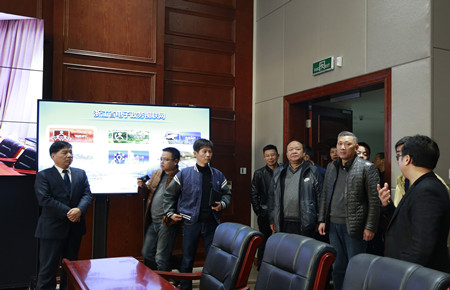 圖為考察組在市應(yīng)急指揮中心會商室觀摩 當(dāng)天下午,考察組一行先行來到臺州市應(yīng)急指揮中心參觀。在觀看了臺州城市宣傳短片和應(yīng)急管理介紹視頻后,市辦預(yù)案管理處處長柯岳兵帶領(lǐng)大家實(shí)地察看了中心機(jī)房、會商室、應(yīng)急廣播室、新聞發(fā)布廳等地??疾烊藛T認(rèn)真聽取講解的同時,還不時拿起手機(jī)拍攝記錄,觀摩途中不斷交流著經(jīng)驗(yàn)與心得。