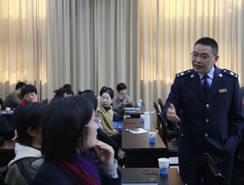 圖為臺州經(jīng)濟(jì)開發(fā)區(qū)稅務(wù)局局長柳東海在課上講話
