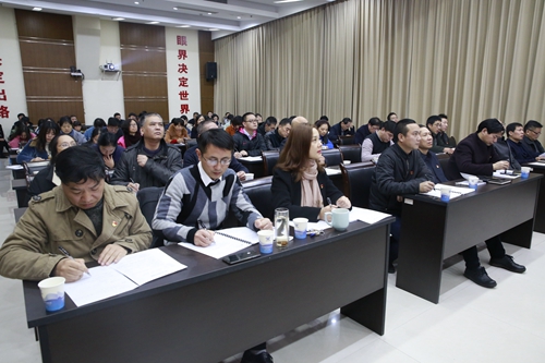 圖為參加學(xué)習(xí)的黨員領(lǐng)導(dǎo)干部和職工