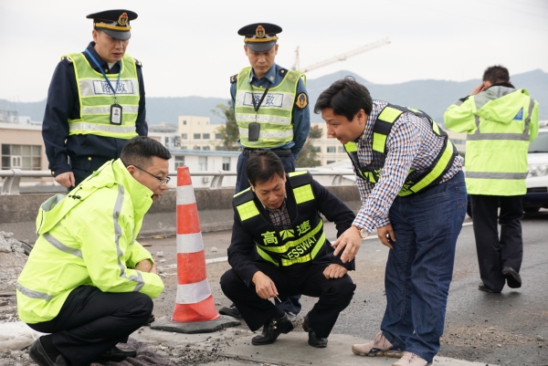 集團(tuán)聯(lián)合高速交警、路政檢查第一階段斷流施工情況 11月7日上午,集團(tuán)聯(lián)合高速交警、高速路政等單位實(shí)地踏勘了集團(tuán)沿線斷流施工現(xiàn)場(chǎng),檢查第一階段施工進(jìn)展情況及現(xiàn)場(chǎng)交通管控點(diǎn)、收費(fèi)站分流點(diǎn)交通流等情況,集團(tuán)總工程師江輝、高速交警臺(tái)州支隊(duì)副支隊(duì)長(zhǎng)沈汝寬、高速路政領(lǐng)導(dǎo)參加檢查。