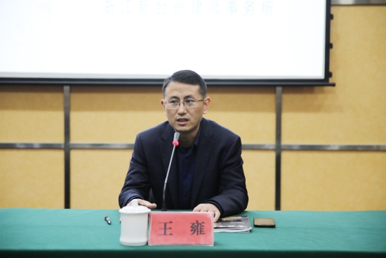圖為王雍主持培訓(xùn)會 本次培訓(xùn)會邀請了浙江新臺州律師事務(wù)所律師程龍為大家授課。程龍結(jié)合實際案例對最新的九民紀要進行解讀,并講解了有關(guān)集團提供擔(dān)保、股東代表訴訟、表決權(quán)能否受限、借款合同等相關(guān)法律知識,還對可能存在的的風(fēng)險,及可能引發(fā)的民事責(zé)任、行政責(zé)任和刑事責(zé)任等進行相應(yīng)的介紹。