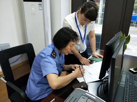 圖為股東到椒江收購點辦理股權轉讓手續(xù)