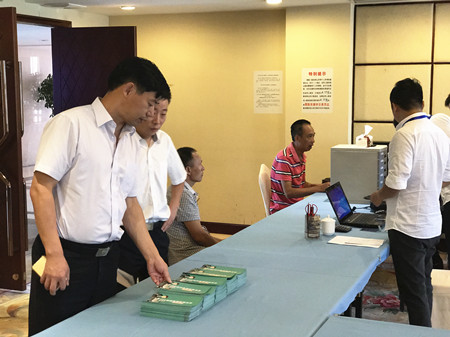 圖為集團(tuán)副總經(jīng)理陳保衛(wèi)正在檢查收購點(diǎn)宣傳資料