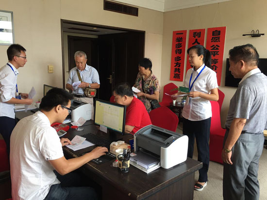 據(jù)椒江收購(gòu)點(diǎn)工作人員朱海燕介紹,集團(tuán)高齡股東較多,如果他們前來(lái)辦理,工作人員會(huì)及時(shí)上前攙扶股東到審核區(qū)坐下,核對(duì)股東是否確權(quán),審核身份證、銀行卡等資料,如果一切無(wú)誤便直接帶領(lǐng)股東到辦理區(qū)。