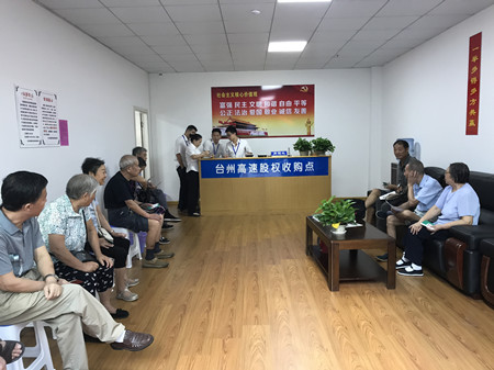 各收購(gòu)點(diǎn)從一開始接收的第一筆股份轉(zhuǎn)讓,到現(xiàn)在大大小小股份協(xié)議書的簽訂,形形色色的股東都表示很支持和理解臺(tái)州高速股權(quán)收購(gòu)工作,相繼前來(lái)轉(zhuǎn)讓股份。有的股東在轉(zhuǎn)了自己的股權(quán)后又立馬發(fā)動(dòng)親戚好友前來(lái)辦理轉(zhuǎn)讓;有的近90歲高齡了還親自到收購(gòu)點(diǎn),耐心聽工作人員講解細(xì)節(jié)內(nèi)容;有的稱多出的十多倍收益為意外之喜;有的甚至悔恨當(dāng)年為何不多將資金投到臺(tái)州高速……可愛可敬的臺(tái)州高速股東們!
