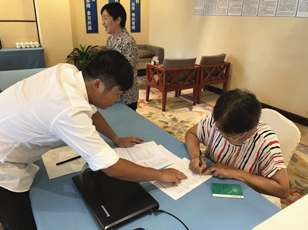 圖為股東在認真簽訂股權(quán)轉(zhuǎn)讓協(xié)議
