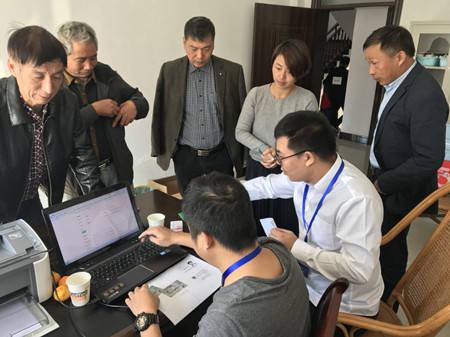 圖為工作人員上門為股東服務現(xiàn)場