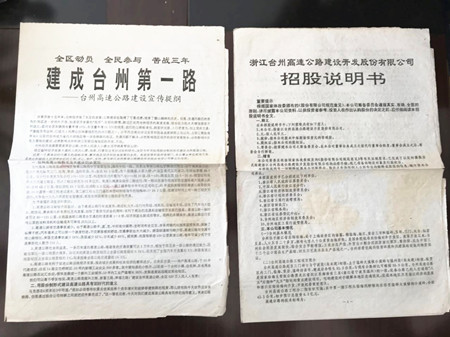 辦理業(yè)務的過程中,有個股東說:“臺州高速真是貼心,知道我們跑城里不方便,還上門辦理業(yè)務,就沖這個也要來把股票賣掉。”還有個股東說:“臺州高速真好,我只投了200塊錢,除了給我一千多的分紅,現(xiàn)在216股還能賣1500多,非常合算,早知道買一萬股了?!?/span> 臨近中午的時候,來了一位面目普通的中年人,他準備了他父親和母親的身份證還有銀行卡,工作人員以為是兩筆代辦業(yè)務,原來是查詢股東紀錄的,查詢的股東名字叫婁巖奶,因為巖奶兩字比較少見,我記得上午的時候辦理過一個叫巖奶的股東的收購業(yè)務,就非常好奇的詢問,這時候管理處的工作人員解釋,他們這里有兩個叫巖奶的人,一個是婁巖奶,一個是宋巖奶,經(jīng)過查詢卻沒有找到婁巖奶的股東信息。據(jù)管理處工作人員回憶,1993年婁巖奶當時還未退休,應該購買了股票。經(jīng)過查詢管理處的退休人員清冊,發(fā)現(xiàn)婁巖奶于1994年12月才退休,根據(jù)初步判斷估計該股東可能當時出于各種原因并沒有購買股票。為了慎重起見,于是工作人員請求管理處把股票購買的原始檔案調閱出來查看,翻開斑駁的原始記錄,一個一個仔細查詢股東姓名,但是很遺憾并沒有該股東的信息,工作人員肯定地回復了股東。雖然讓婁巖奶的兒子失望了,但是工作人員卻在斑駁的檔案中看到了非常珍貴的歷史檔案:《全區(qū)動員、全民參與、苦戰(zhàn)三年、建成臺州第一路—臺州高速公路建設宣傳提綱》、《浙江臺州高速公路建設開發(fā)股份有限公司招股說明書》,看著這些檔案,眼睛有些濕潤,仿佛又回到了那個波瀾壯闊的年代,也為高速集團曾經(jīng)的創(chuàng)舉而驕傲。