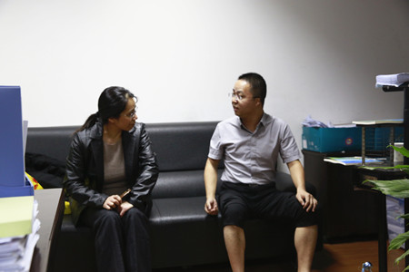 圖為當晚,辦公室負責人與股東溝通股權轉(zhuǎn)讓事宜