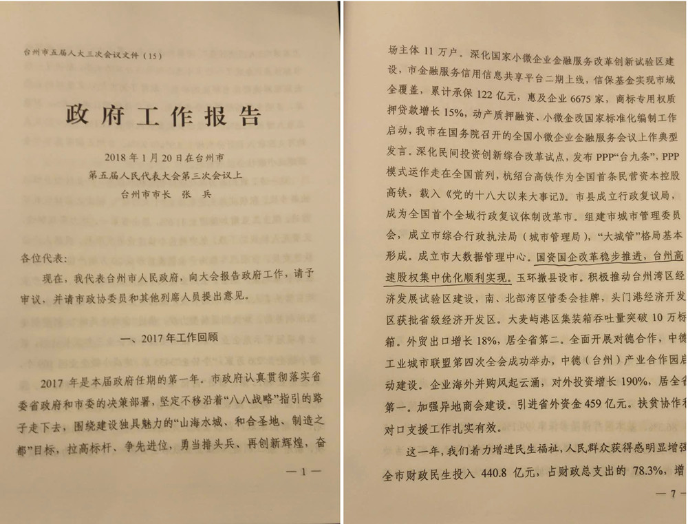 臺州高速股權集中優(yōu)化寫進《政府工作報告》 |