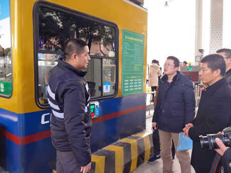圖為收費站現(xiàn)場觀摩培訓(xùn)現(xiàn)場 據(jù)悉,該支付方式即將在全省高速公路378個收費站全面實行。 日前,省公路管理局印發(fā)了《全省高速公路通行費全面支持支付寶移動支付實施方案》,標(biāo)志著全省高速公路通行費將全面支持支付寶移動支付。在前期滬杭甬高速公路試運行支付寶移動支付通行費基礎(chǔ)上,省公路局聯(lián)系網(wǎng)絡(luò)公司已進(jìn)一步完善了收費系統(tǒng),計劃在2018年3月前全面啟動。目前,支付寶公司已陸續(xù)在全省高速公路收費站進(jìn)行相關(guān)設(shè)備安裝。