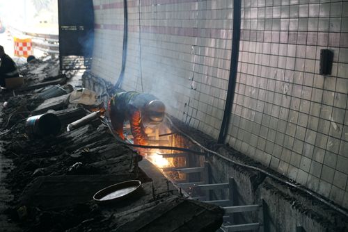圖為施工人員在隧道高溫作業(yè)