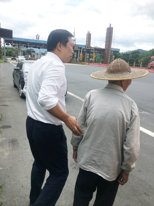 7月19日下午1點10分許,工程部機電設(shè)備維養(yǎng)中心在臺州南收費所完成維養(yǎng)任務(wù)返回中心途中,發(fā)現(xiàn)寧向距離該所1公里左右的高速路上有一老人戴著涼帽正在應(yīng)急車道內(nèi)行走。此時路面車輛速度非???,情況十分危險。見此情況后,中心隊員立即下車詢問情況。經(jīng)了解,該名老人已有70多歲,家住院橋東鑒村,準備去往橫涇后岸村親戚家,后因迷路、不識字誤上高速,直到被中心隊員發(fā)現(xiàn)。