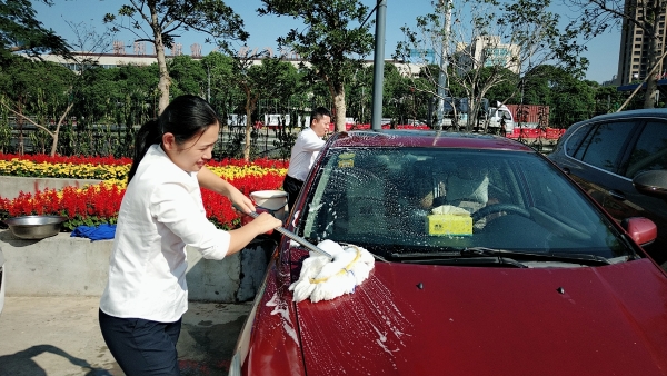黨員服務(wù)群眾免費洗車 “等下車鑰匙拿給黨員同志,他們幫你免費洗車?!笔召M員張裴裴一上班就碰到這等好事。 11月6日上午,溫嶺西收費所黨支部組織黨員在所內(nèi)開展了免費義務(wù)洗車活動,一個上午共清洗10多輛汽車,受到群眾員工的好評。