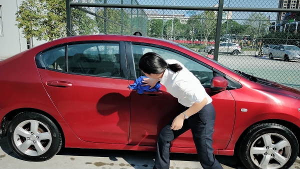 溫嶺西支部書記周超帶領(lǐng)黨員服務(wù)群眾 當天上午,活動一開始,前來洗車的車輛絡(luò)繹不絕。在支部書記周超的帶領(lǐng)下,五名黨員便開始分工合作。兩名男同志負責沖水、上泡沫、擦洗、再沖水,兩名女同志負責擦干和吸塵器清掃內(nèi)室,還有一名男同志負責開車挪車,需要清洗的車輛一輛接著一輛,黨員同志們顧不得擦干身上的被水濺濕了的衣服,忙得不亦樂乎??粗幌吹靡粔m不染的車,大家都不約而同地會心一笑。